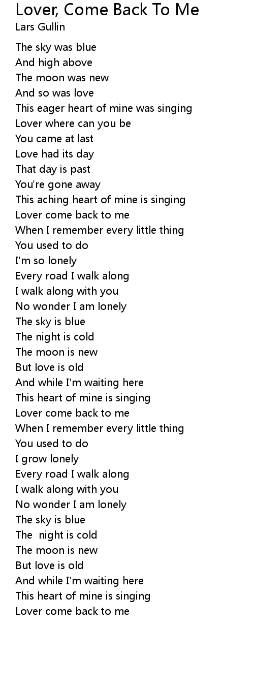 Lover come back to me |