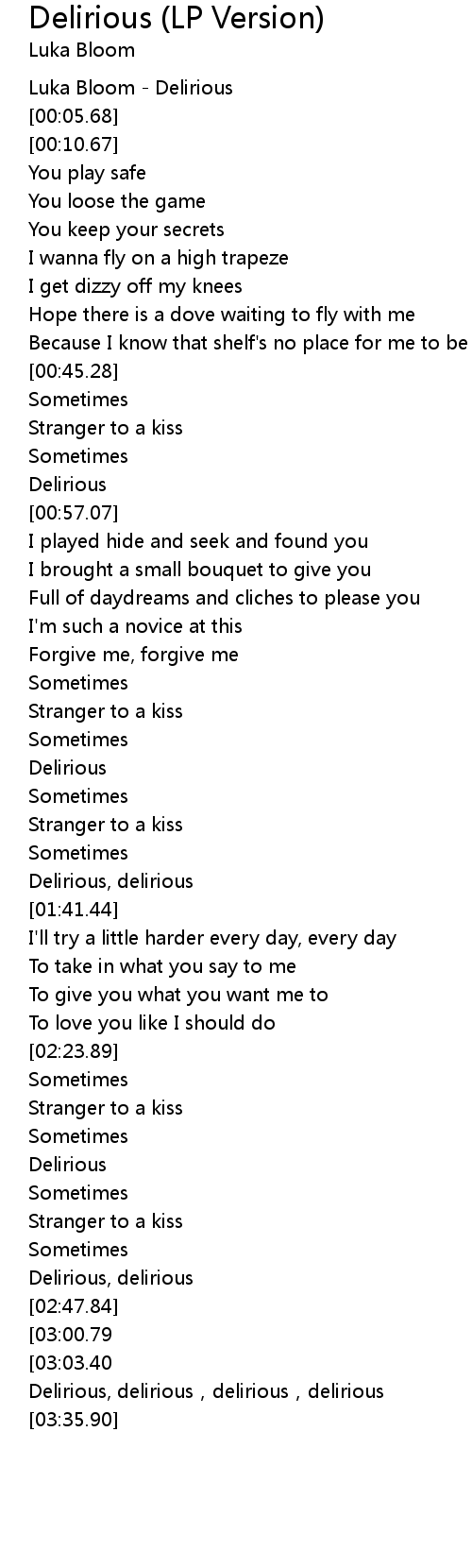 | [03:16.62] | Delirious, delirious, delirious, delirious |