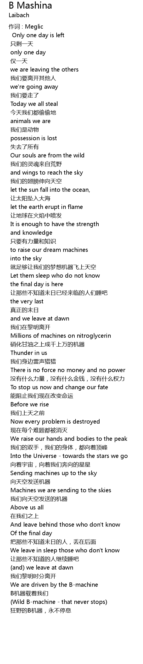 | 作词 : Meglic | |