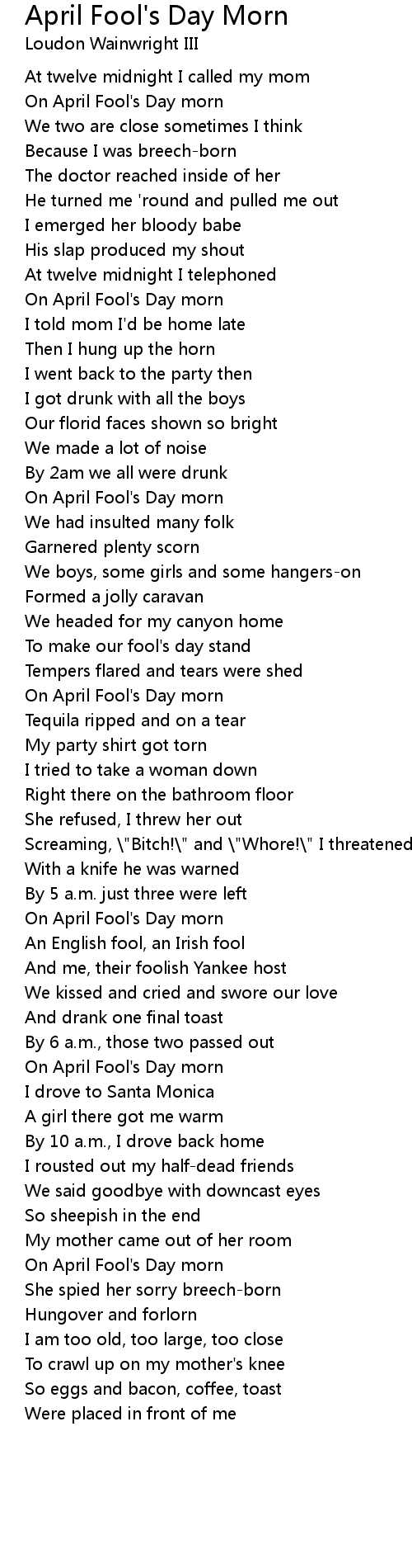 On April Fool's Day morn |