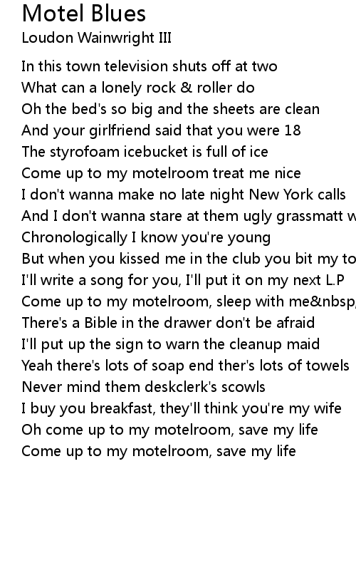 Oh come up to my motelroom, save my life |