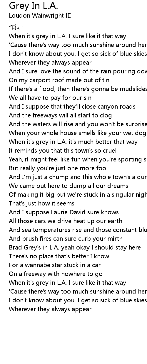 | When it' s grey in L. A. it' s much better that way | |