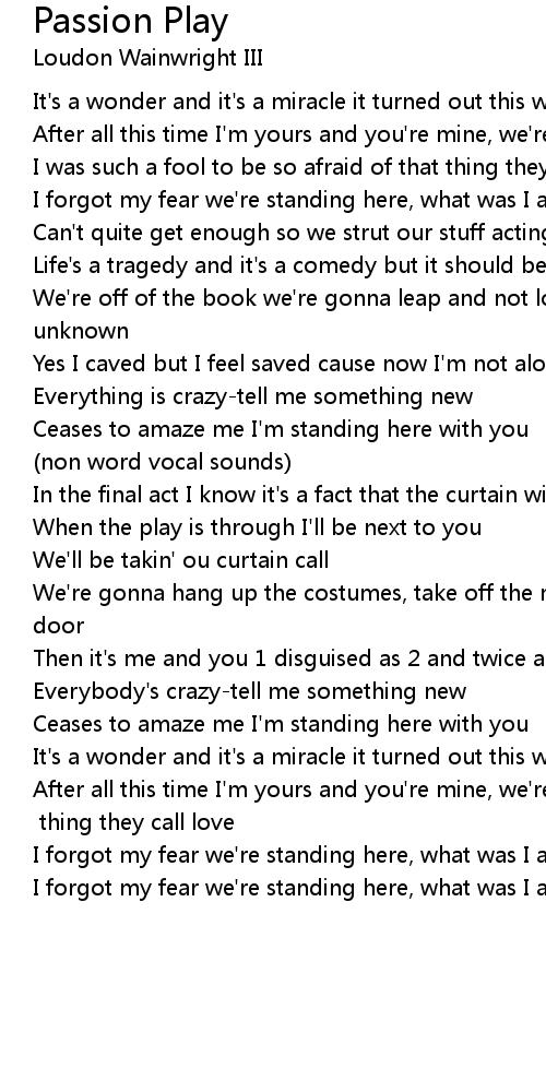 Life's a tragedy and it's a comedy but it should be a passion play |