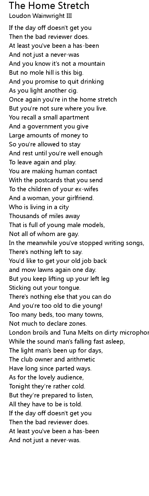 Once again you're in the home stretch |