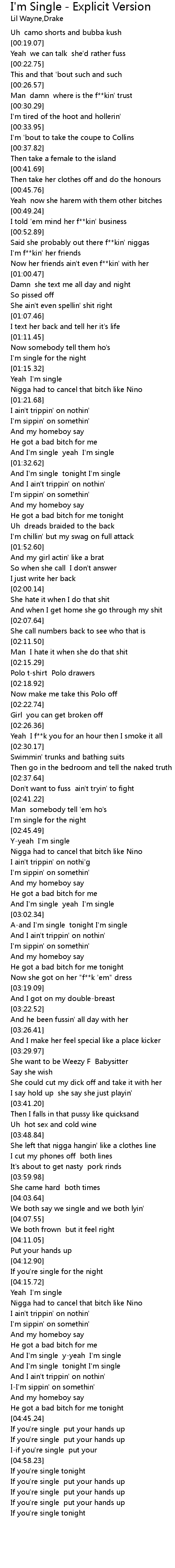 | [02:59.61] | And I'm single yeah I'm single |