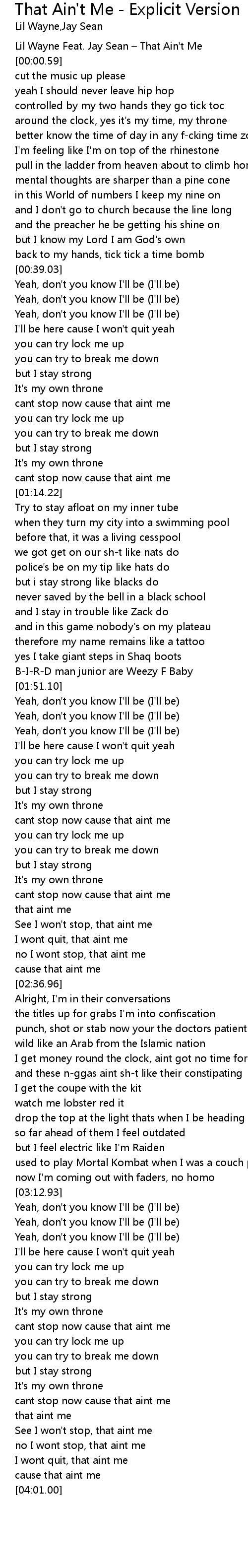 | [00:-01.92] | Lil Wayne Feat. Jay Sean That Ain' t Me |