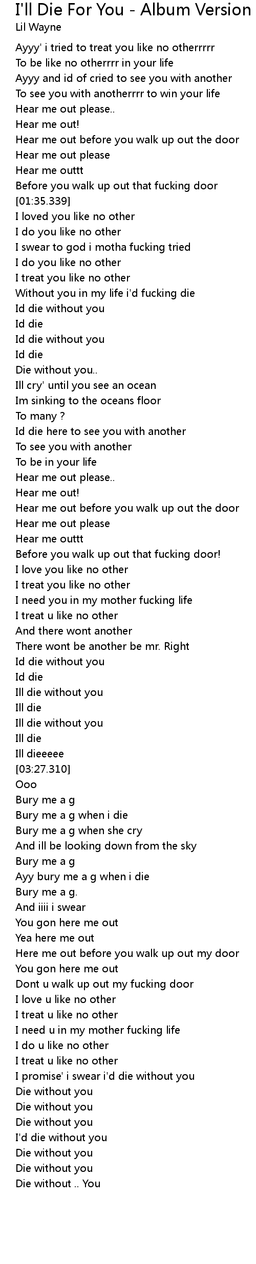 | [03:17.100] | Ill die without you |
