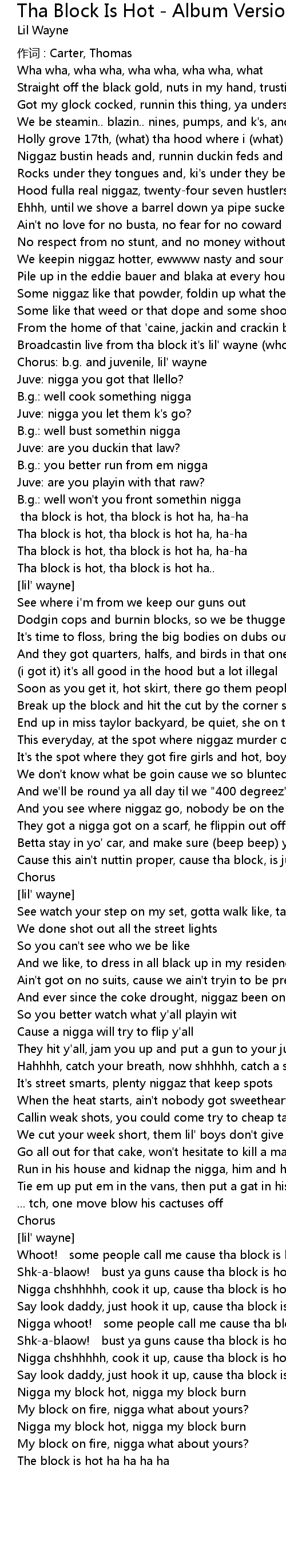 | [wayne] tha block is hot, tha block is hot ha, ha-ha | |