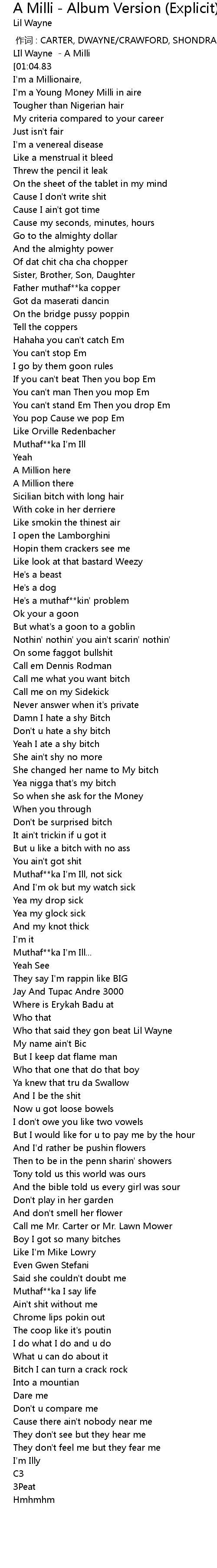 | [00:21.64] | I'm a Young Money Milli in aire |
