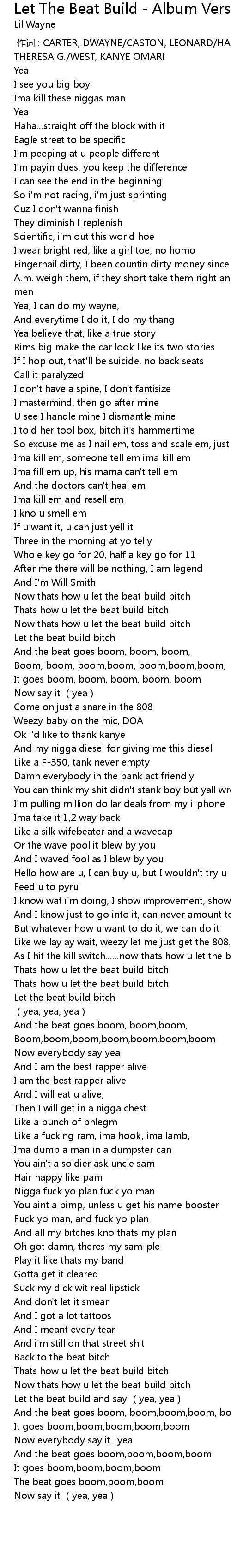 | [01:52.84] | Thats how u let the beat build bitch |