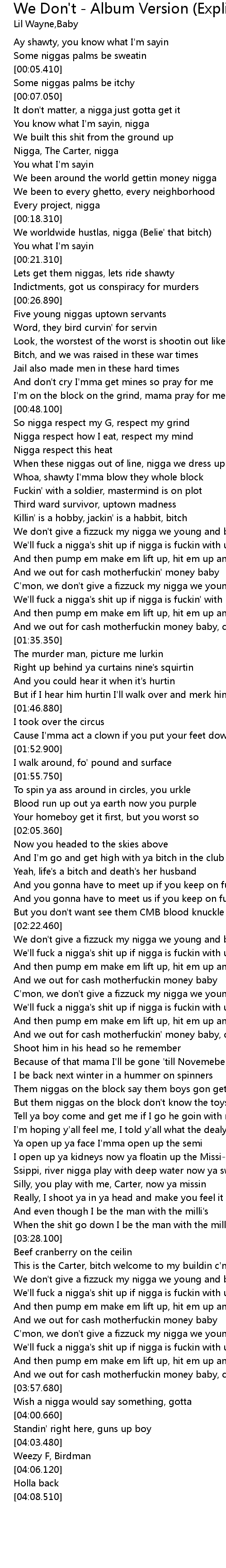 | [03:48.590] | We'll fuck a nigga's shit up if nigga is fuckin with us |