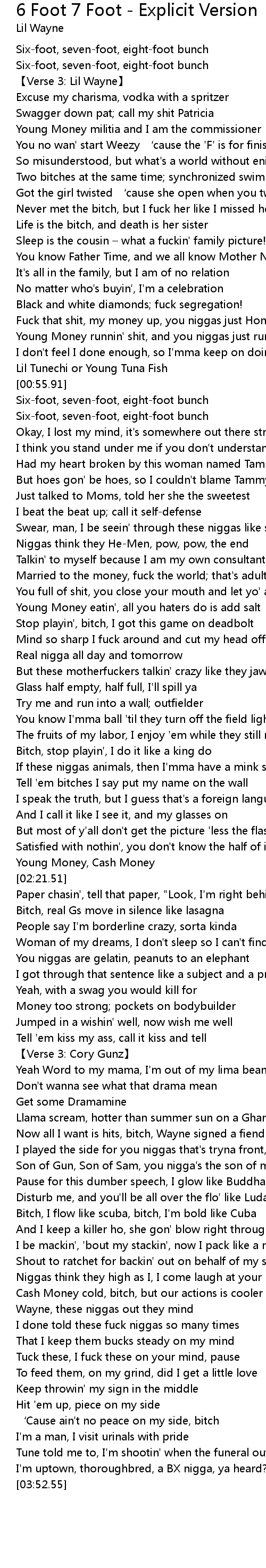 | [00:05.39] | Verse 3: Lil Wayne |