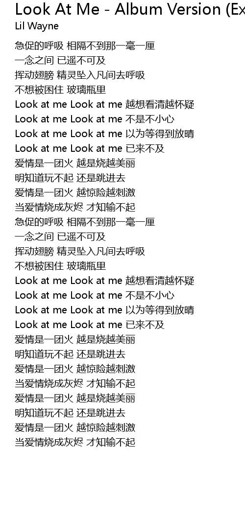 | [02:25.84] | Look at me Look at me 已来不及 |