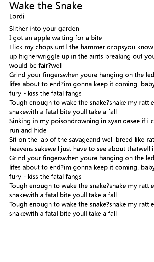 Tough enough to wake the snake?shake my rattle baby outta controlwake the snakewith a fatal bite youll take a fall