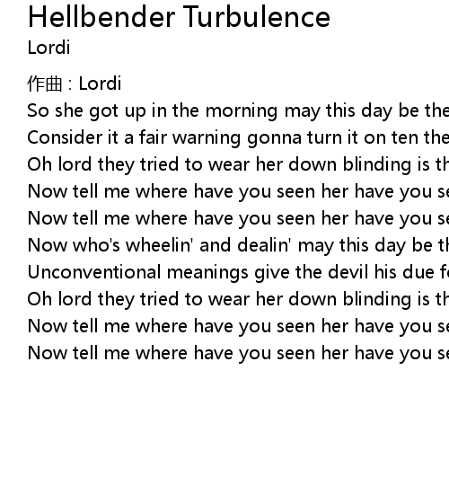 | Now tell me where have you seen her have you seen hellbender turbulence |