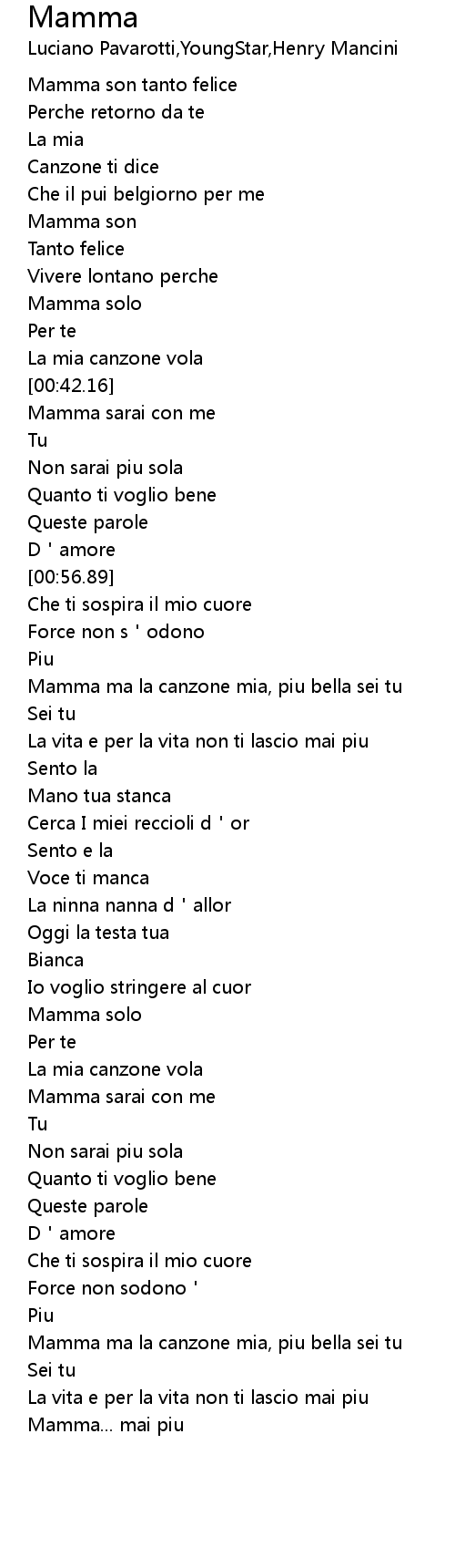 | [00:43.83] | Mamma sarai con me |
