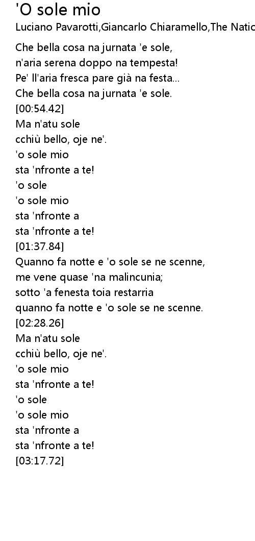 | [00:46.16] | Che bella cosa na jurnata ' e sole. |
