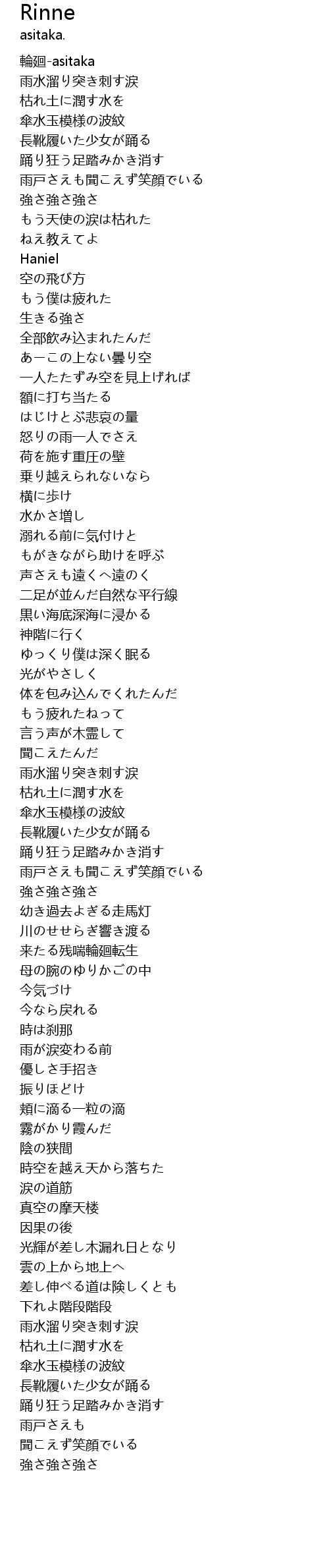 | [00:00.943] | 輪廻-asitaka |