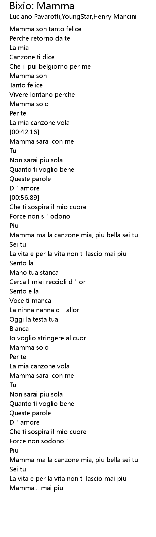 | [01:06.92] | Mamma ma la canzone mia, piu bella sei tu |