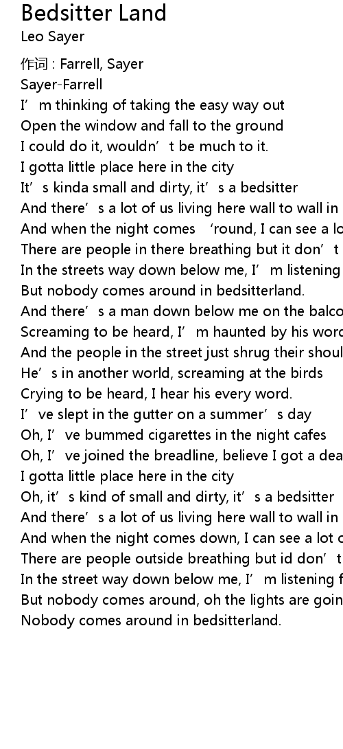 | Song | Bedsitter Land |