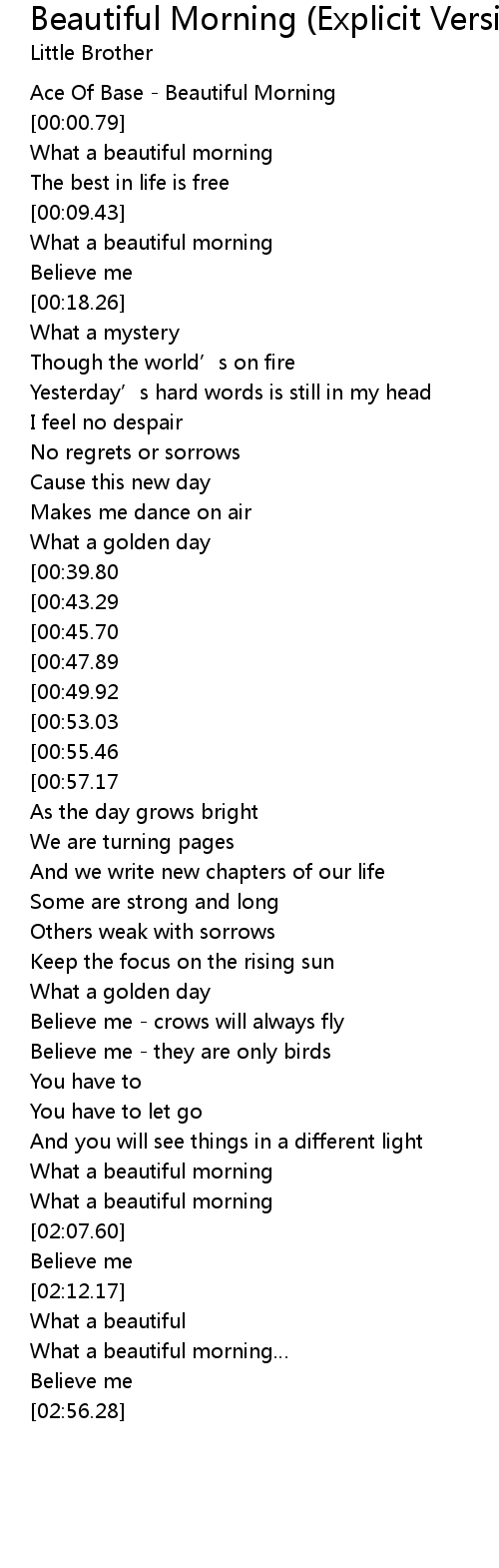 | [00:00.00] | Ace Of Base - Beautiful Morning |