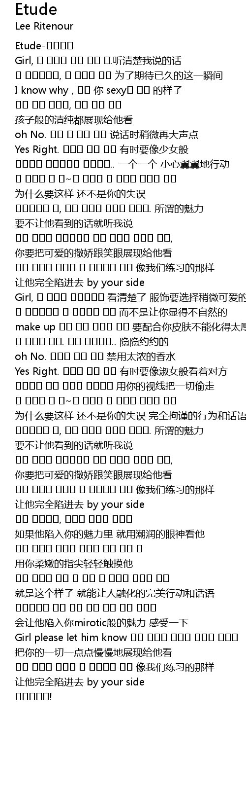 | 우리 연습한 그대로 푹 빠져들어 가게 像我们练习的那样 让他完全陷进去 by your side | |