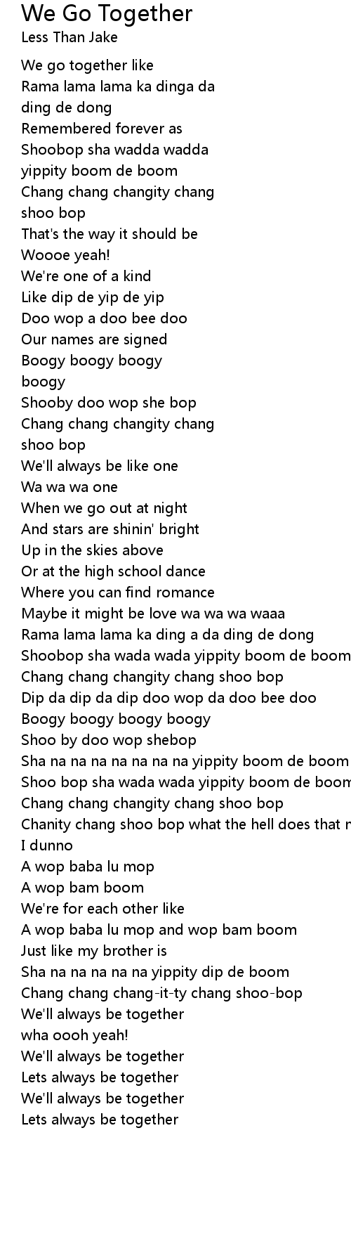 Shoo bop sha wada wada yippity boom de boom |