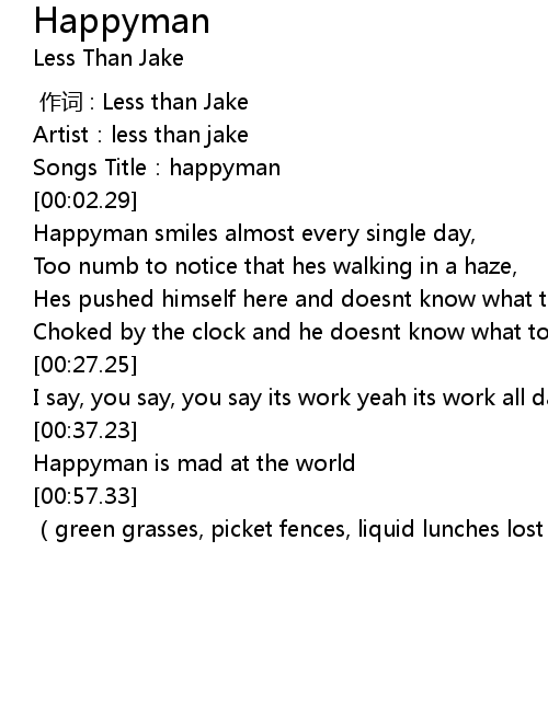 | [00:58.14] | (green grasses, picket fences, liquid lunches lost his senses) |
