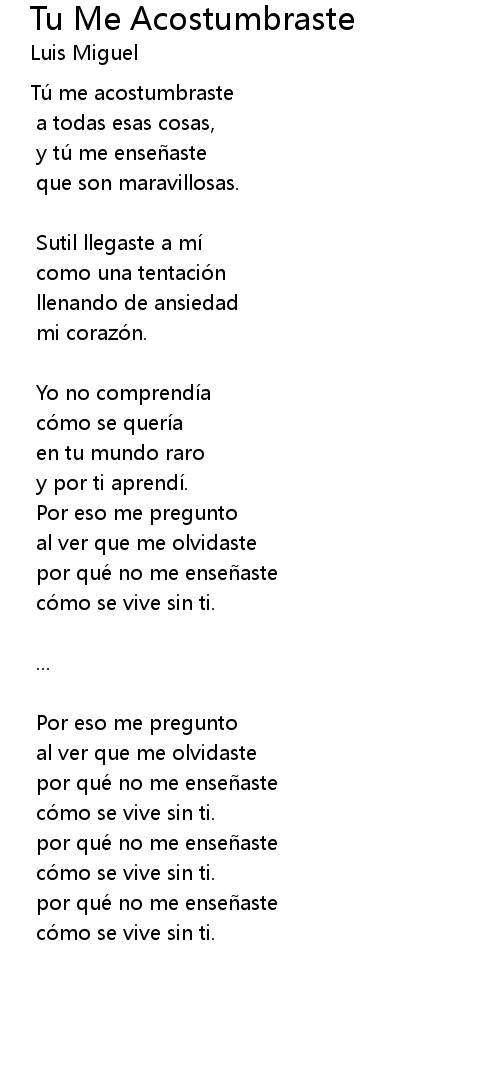 Tu Me Acostumbraste Lyrics