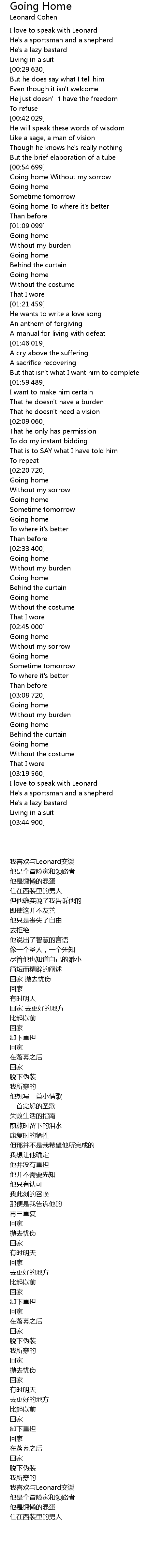 | [03:15.500] | Going home |