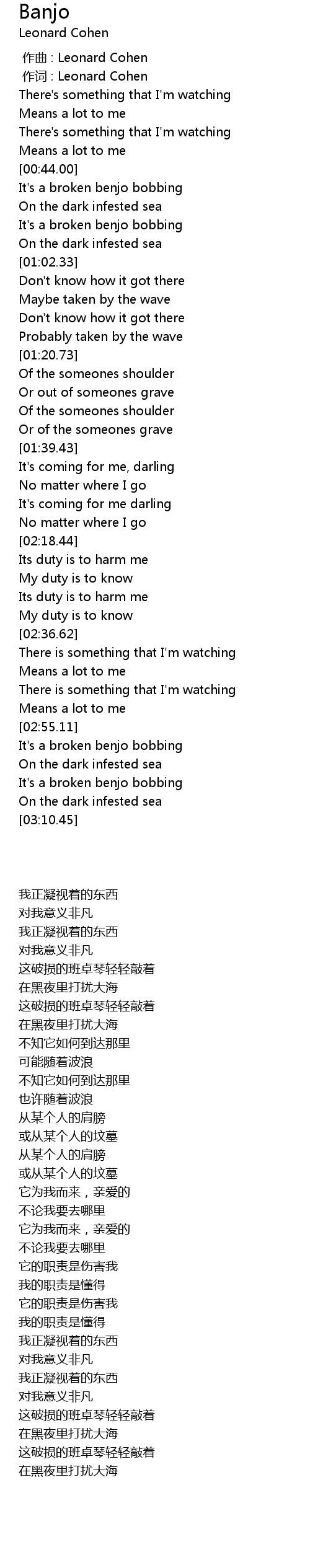 | [00:01.00] | zuò cí : Leonard Cohen |
