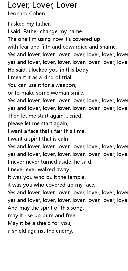 | [00:26.170] | Yes and lover, lover, lover, lover, lover, lover, lover come back to me, |