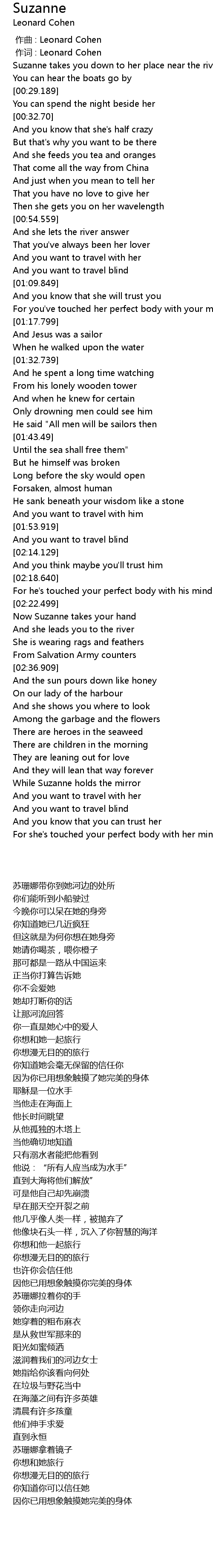 | [00:00.00] | 作曲 : Leonard Cohen |