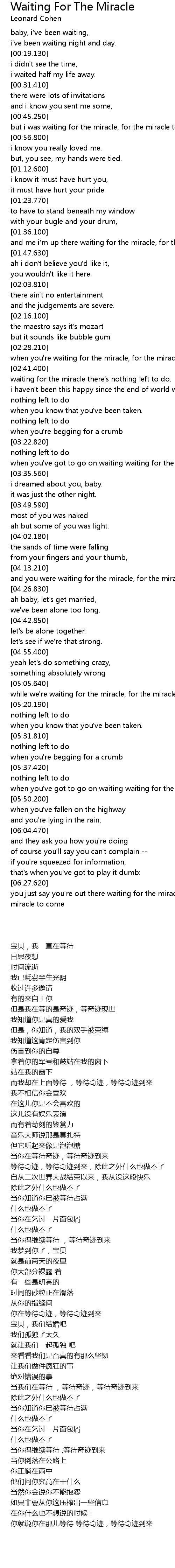 and me i'm up there waiting for the miracle, for the miracle to come. |