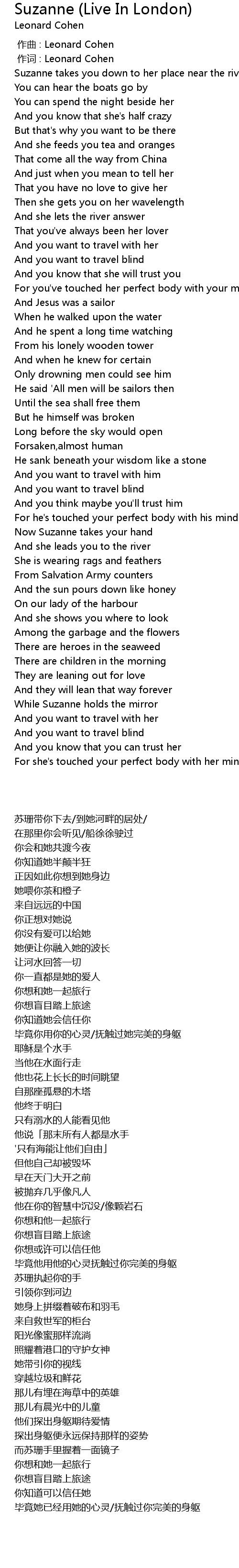 | [00:00.00] | 作曲 : Leonard Cohen |