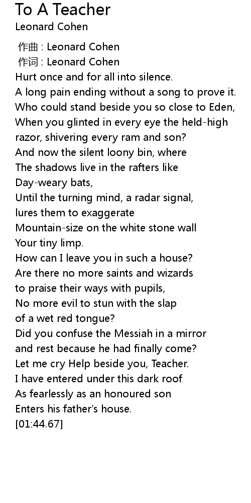 | [00:01.00] | zuo ci : Leonard Cohen |