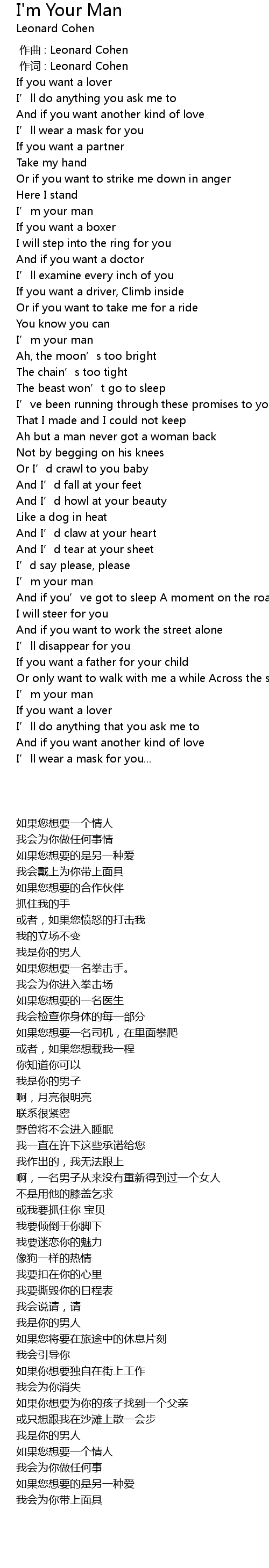 | [00:01.00] | 作词 : Leonard Cohen |