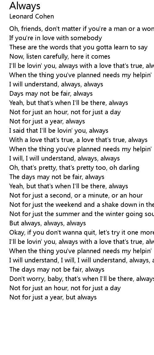 I will understand, I will, I will understand, always, always |