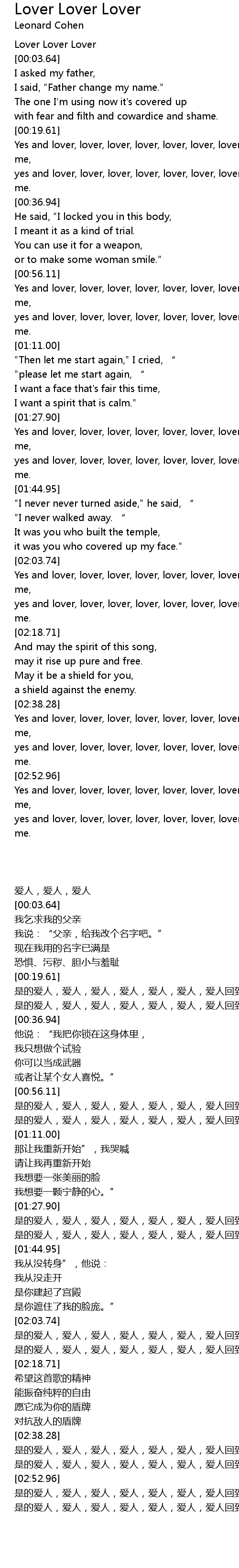 | [03:03.69] | yes and lover, lover, lover, lover, lover, lover, lover come back to me. |