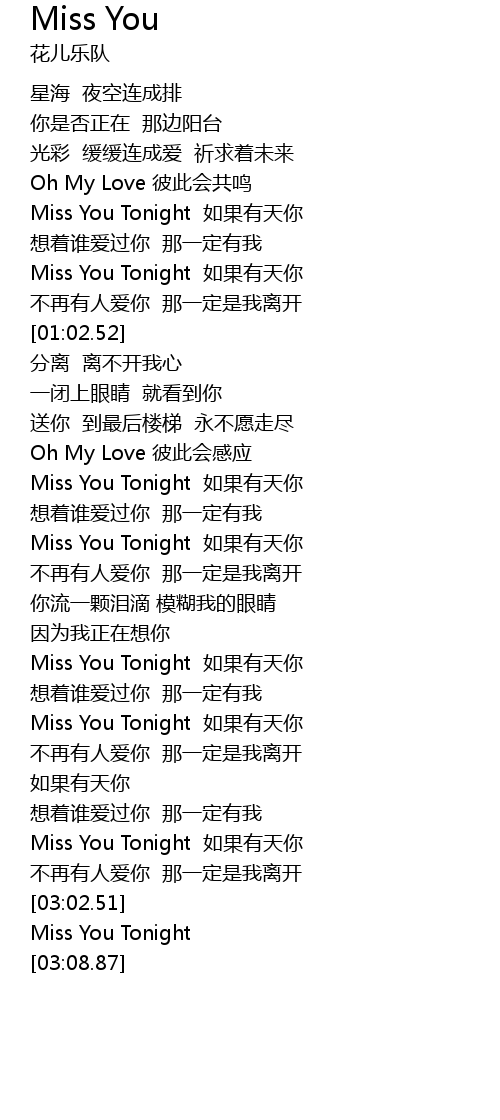 | [02:11.81] | Miss You Tonight ru guo you tian ni |