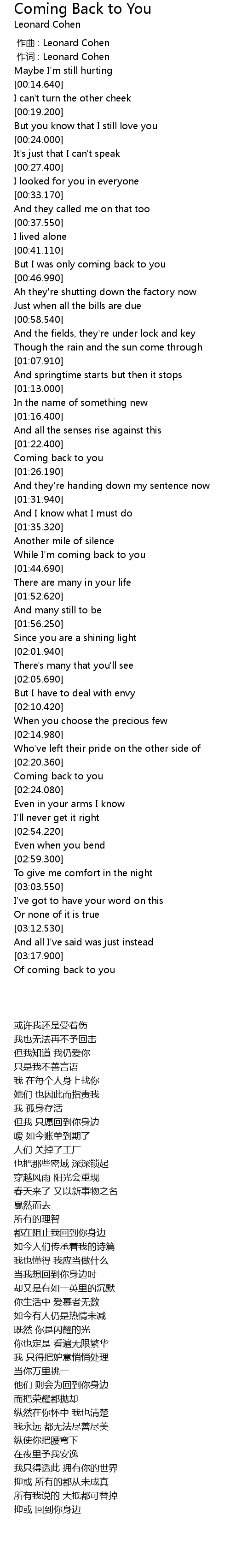 | [00:00.00] | zuo qu : Leonard Cohen |