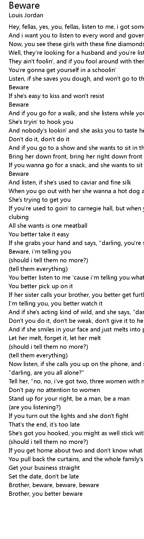 Hey, fellas, yes, you, fellas, listen to me, i got something to tell you |