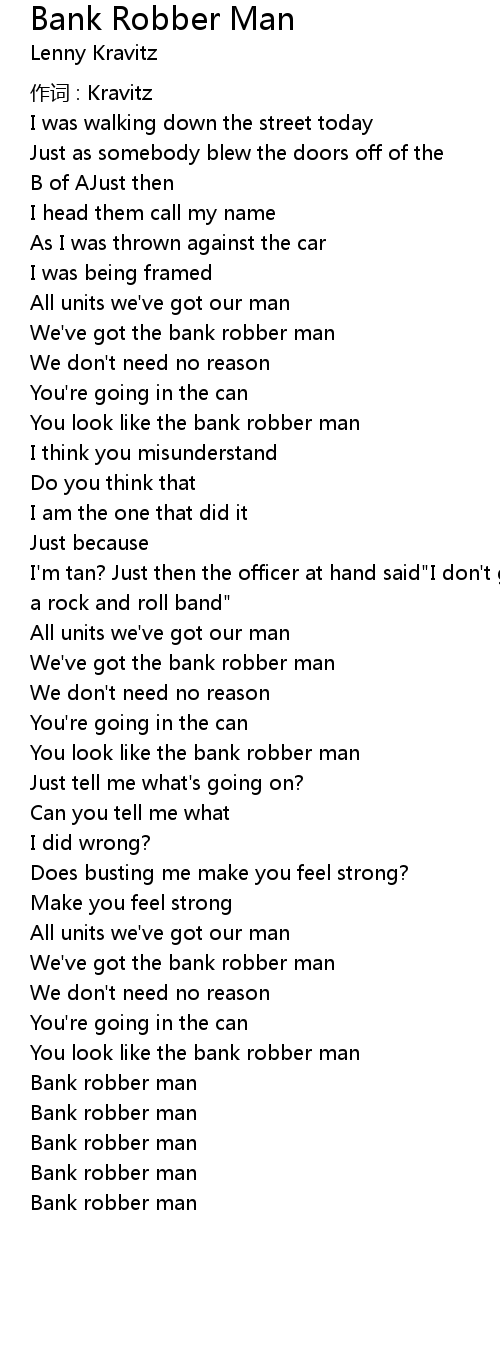 | Song | Bank Robber Man |