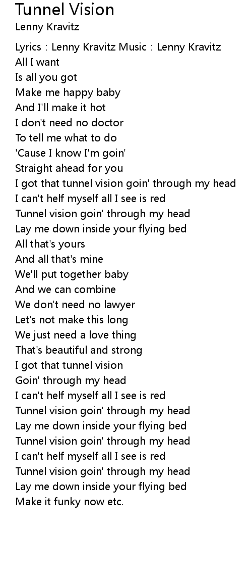 | Tunnel vision goin' through my head | |