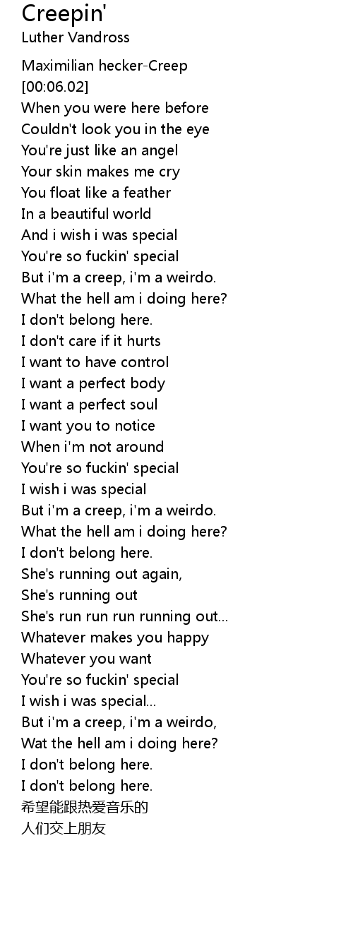 | [01:22.08] | But i'm a creep, i'm a weirdo. |