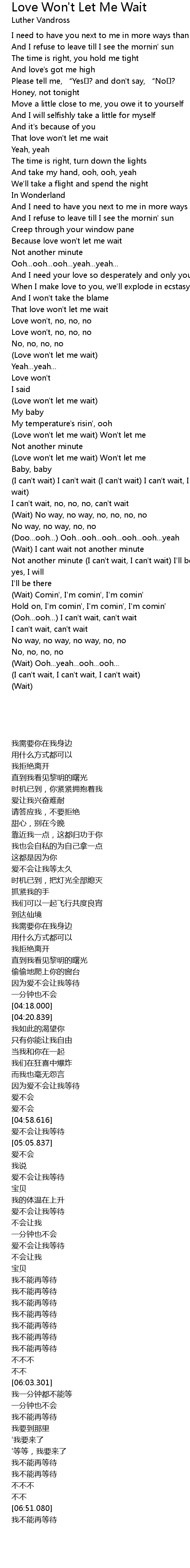 | (Wait) I cant wait not another minute | |