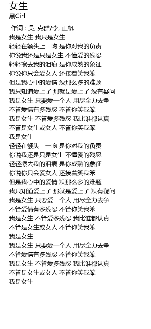 | [00:05.389] | 我是女生 我只是女生 |
