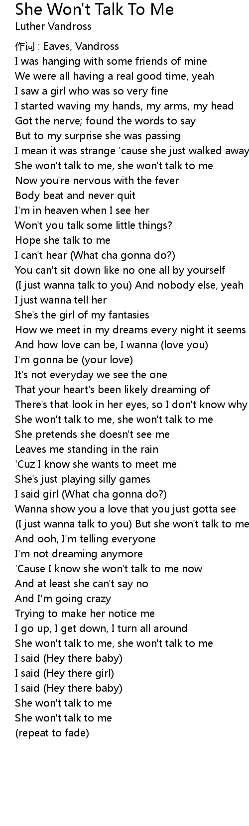 | I just wanna talk to you But she won' t talk to me | |
