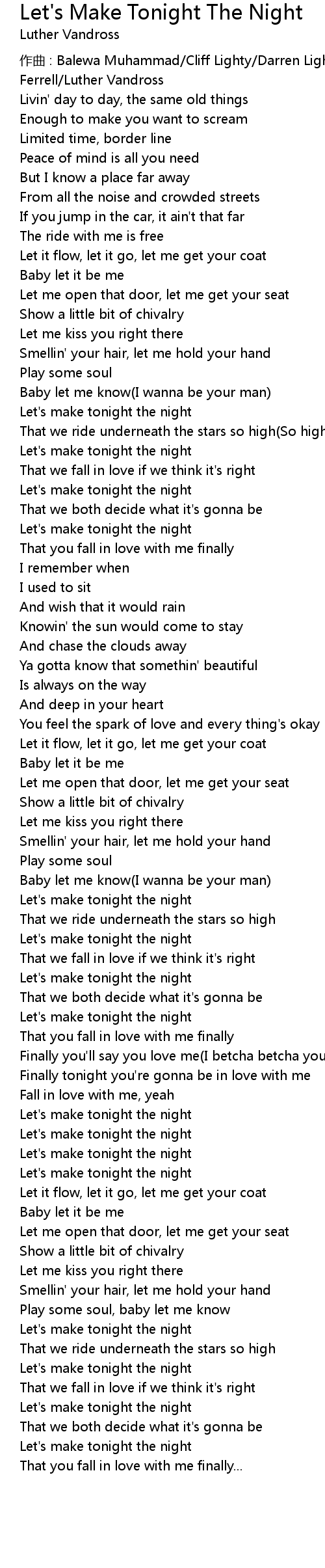 | 作曲 : Balewa Muhammad/Cliff Lighty/Darren Lighty/Edward "DJ Eddie F" Ferrell/Luther Vandross | |