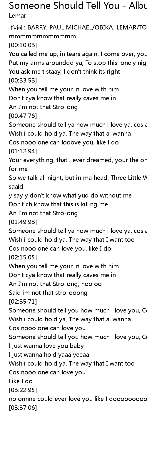 | [01:50.33] | Someone should tell ya how much i love ya, cos aai really do |